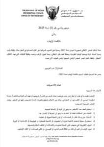 ويأتي هذا المرسوم ضمن جهود حكومة السلام والوحدة لتعزيز حكم القانون وضمان السلم المجتمعي، وترسيخ أسس دولة مدنية حديثة تقوم على الاستقرار والشفافية، وتستند إلى المبادئ الدستورية التي أقرها الدستور الانتقالي لعام 2025.