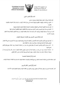 وأكد المرسوم على تعزيز دور القضاء والأجهزة المختصة لضمان محاسبة مرتكبي الجرائم الإرهابية وفق القانون، بما يحمي المواطنين والمؤسسات العامة، ويضمن حماية السودان من أي تهديدات إرهابية أو متطرفة.