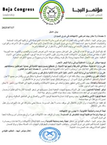 وجه مؤتمر البجا رسائل مباشرة لوزارة الداخلية ووالي ولاية البحر الأحمر، مطالبًا باتخاذ إجراءات فورية وحاسمة، أبرزها: