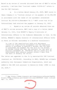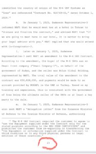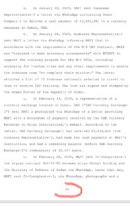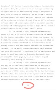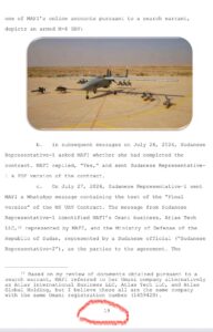 وفقاً لما هو مبين، تُظهر نتائج تنفيذ مذكرات التفتيش أنه في عام 2024 قامت مافي بتسهيل بيع أنظمة طائرات مسيّرة قتالية إيرانية الصنع من طراز مهاجر-6 بين وزارة الدفاع وإسناد القوات المسلحة الإيرانية (MODAFL) ووزارة الدفاع السودانية.